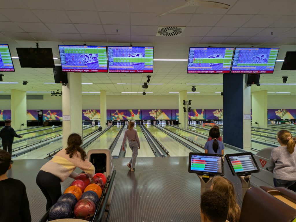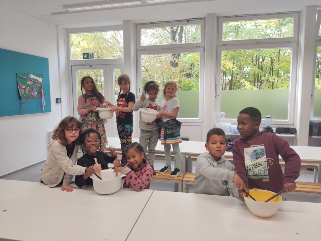 Les vacances d’automne ont été un véritable succès pour nous tous. Les enfants comme nous, les éducateurs et éducatrices, avons passé un merveilleux moment, ponctué de rires, de découvertes et d’activités créatives. Malgré une météo automnale capricieuse, nous avons gardé notre bonne humeur et profité au maximum de chaque journée. Nous avons bricolé ensemble et mis en œuvre de nombreuses idées créatives. Bien sûr, nous avons également anticipé Halloween avec impatience, et quelques petites œuvres d’art sur le thème d’Halloween ont vu le jour. Notre stage de breakdance, auquel ont participé une vingtaine d’enfants, a été un moment fort tout particulier. Avec beaucoup d’énergie, le sens du rythme et un esprit d’équipe, les enfants ont répété des mouvements géniaux et ont finalement présenté une chorégraphie impressionnante. Le public était enthousiaste et a applaudi bruyamment. Un véritable succès pour nos petits danseurs et danseuses ! Notre fête d’Halloween a eu lieu juste après. L’ambiance était fantastique, il y avait beaucoup de bonbons et tout le monde a dansé et ri avec enthousiasme lors du jeu « Stopptanz ». La fête a été très appréciée par tous et a clôturé la journée en beauté. Nos excursions ont également rendu ces vacances spéciales. Tout le monde s’est beaucoup amusé au bowling et lors de la visite de l’aquarium tropical, les enfants ont été fascinés par les animaux passionnants et le monde sous-marin impressionnant.